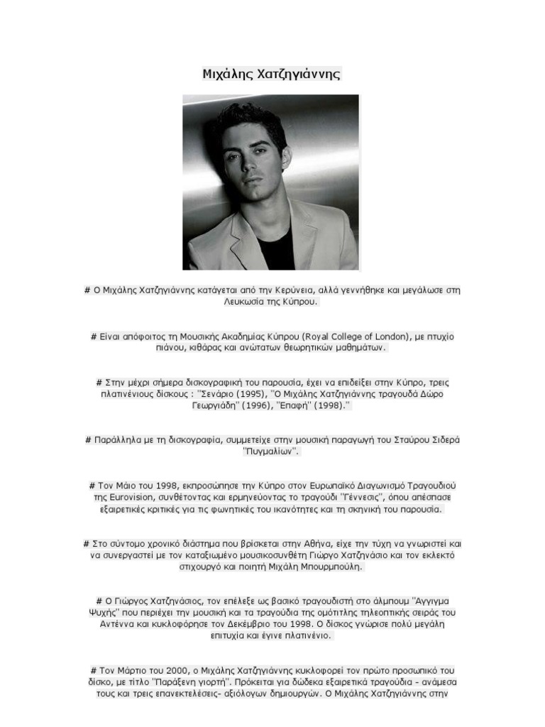 Χατζηγιαννησ Τραγουδια ~ Alkhstis Prwtopsalth Kai Mixalhs Xatzhgiannhs Sthn Texnopolh Monopoli Gr. Ο διάσημος ηθοποιός έκανε ένα πολύ πρωτότυπο δώρο γενεθλίων για τα 52α γενέθλιά. Με μια αγκαλιά τραγούδια (σ,v,3.3). 10 τραγούδια από τις προηγούμενες 10 δεκαετίες (video). Άκου όλα τα τραγούδια του δίσκου: Τραγούδια και σκοποί από το ρεπερτόριο της σμυρναίικης μουσικής με μία σύγχρονη ενορχηστρωτική προσέγγιση αλλά και νέες πρωτότυπες συνθέσεις.